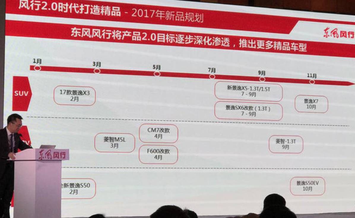 根据规划,2017年东风风行推进2.0战略,全年推出10款新车,冲击40万辆年度销售目标。从新品规划资料中可以看到,柳汽仍旧在追求多元化价值:今年上半年,主要推出5款车型,其中SUV1款、MPV3款以及轿车1款;到了下半年,便是3款SUV、1款MPV和1款电动轿车。