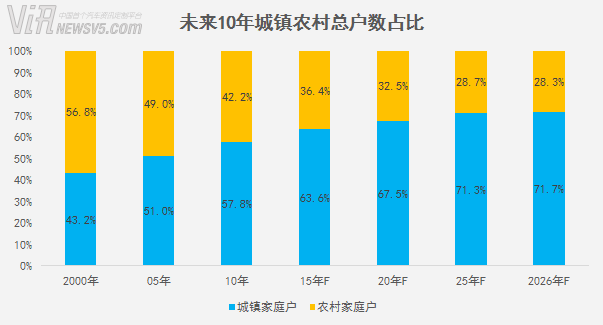 2016年的人口统计数据显示,中国城镇常住人口79298万人,比上年末增加2182万人,乡村常住人口58973万人,减少1373万人,城镇人口占总人口比重(城镇化率)为57.35%。预测数据显示,到2026年城镇家庭户在所有家庭数量中的占比将达到71.7%,比2015年多出将近10个百分点。随着城镇化建设的进一步深入,大量新增城镇人口将为汽车销量提供强有力的支撑。
