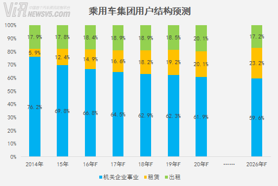集团层面的新车需求量,即机关企事业单位、租赁、出租等。按照国家信息中心的预测,来自机关企事业单位、租赁和出租等行业的需求在2026年将达到 151万辆。其中,到2026年,机关企事业单位的需求占比将达到59.6%,租赁占比为23.2%,出租占比为17.2%。