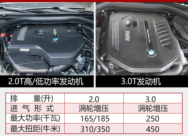 动力方面,宝马5系标准轴距版车型搭载2.0T四缸与3.0T六缸发动机。2.0T发动机采用不同调校的高/低功率两种版本,其中低功率版发动机最大功率165千瓦,峰值扭矩310牛米;高功率版最大功率185千瓦,峰值扭矩350牛米;3.0T发动机最大功率250千瓦,峰值扭矩450牛米。传动系统方面,匹配8速Steptronic手自一体变速箱。(图/文 网通社 石瑞)