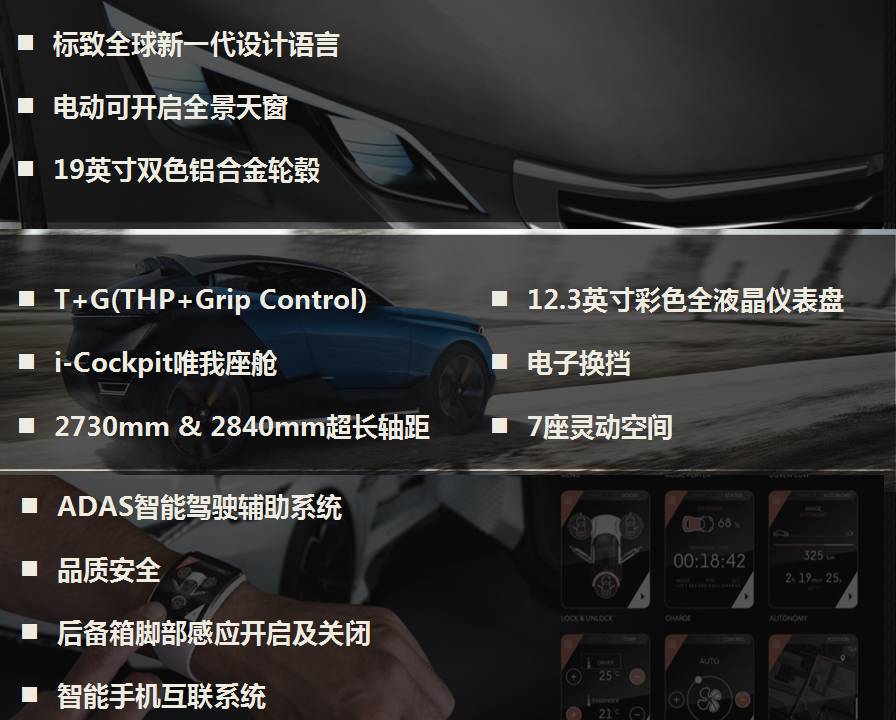 点赞一,近乎完美的操控性和道路通过性。东风标致5008 (配置|询价)搭载380THP、350THP两款Pure Tech涡轮增压直喷发动机。T动力发动机与增强型Grip Control多路况适应系统,共同构成“T+G黄金操控组合”,可适应公路、沙地、雪地、泥地4种路况,保证了车辆在不同路况下良好的通过性。5008配备的HDC坡道缓降功能,帮助驾驶员在陡坡和砂石地面路况下坡时,合理控制车速和车身稳定性,提升安全性能。