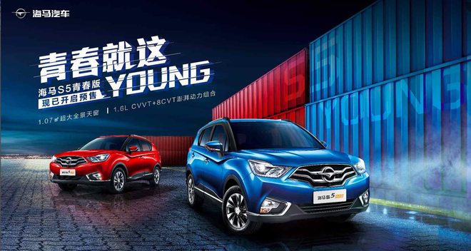 S5 Young是海马旗下小型SUV,新车已于近日正式更名为——S5青春版,目前在售车型仅提供5速手动变速箱,企业还将推出CVT车型。网通社从海马官方获悉,S5青春版CVT车型正式开启预售,新车共推出3款车型,其预售价区间为7.98~8.98万元。外观方面,S5青春版前脸采用虎啸式两幅梯形镀铬进气格栅,配以两侧不规则大灯组,更显年轻。动力上,新车将搭载1.6升发动机。