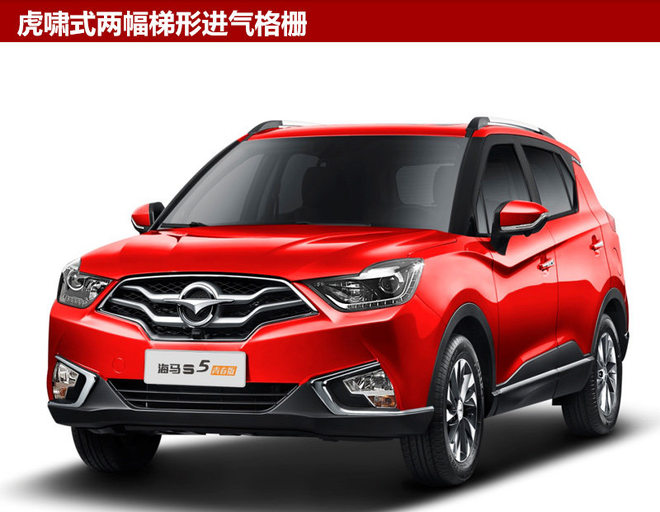 新车外观采用虎啸式进气格栅,中间波浪形镀铬饰条点缀其中;两侧喙矩式前大灯犀利有神,灯组内部采用了熏黑处理,近光灯带有透镜结构,配以下方弯曲的LED日间行车灯,整体更具辨识度。海马S5青春版的A、B柱进行熏黑处理,符合时尚潮流气息。此外,在车身配色方面,将提供中国红、威尼斯蓝、活力橙等六种绚丽颜色。