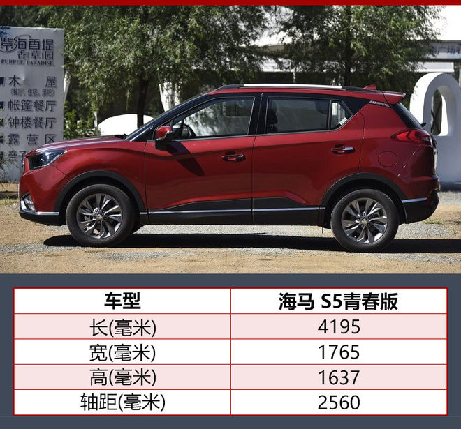 海马S5青春版车身尺寸为4195*1765*1637毫米,轴距达到2560毫米,是海马汽车面向年轻人群量身打造的小型SUV。同时,新车配备大尺寸全景天窗,面积高达1.07m²、可开启面积0.564m²,满足年轻消费者对宽阔视野的需求。