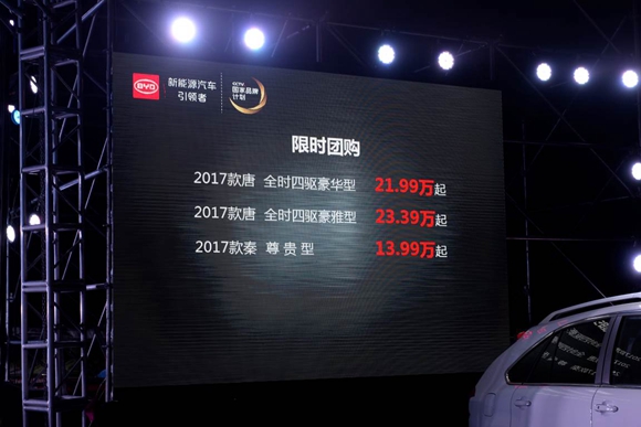 这仅仅是开胃小菜。比亚迪带给消费者的福音大招,是在比亚迪汽车销售有限公司西南营销部重庆大区经理李富天致辞后现场公布的。活动当晚,比亚迪2017款唐、2017款秦现场上市,并直接给出了数万元的新车优惠政策。
