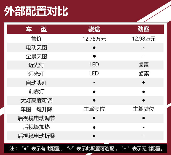 至于今天具体对比的两款车型,它们分别是骁途2017款 1.6L CVT两驱都市进取型(下文简称骁途)以及劲客2017款 1.5L CVT智行版(下文简称劲客),这两款车型的官方指导价比较接近,并且10万元出头的车型也是大部分家庭的首要关注热点。