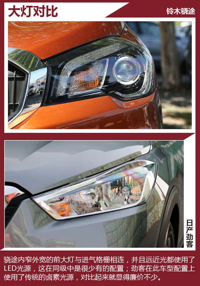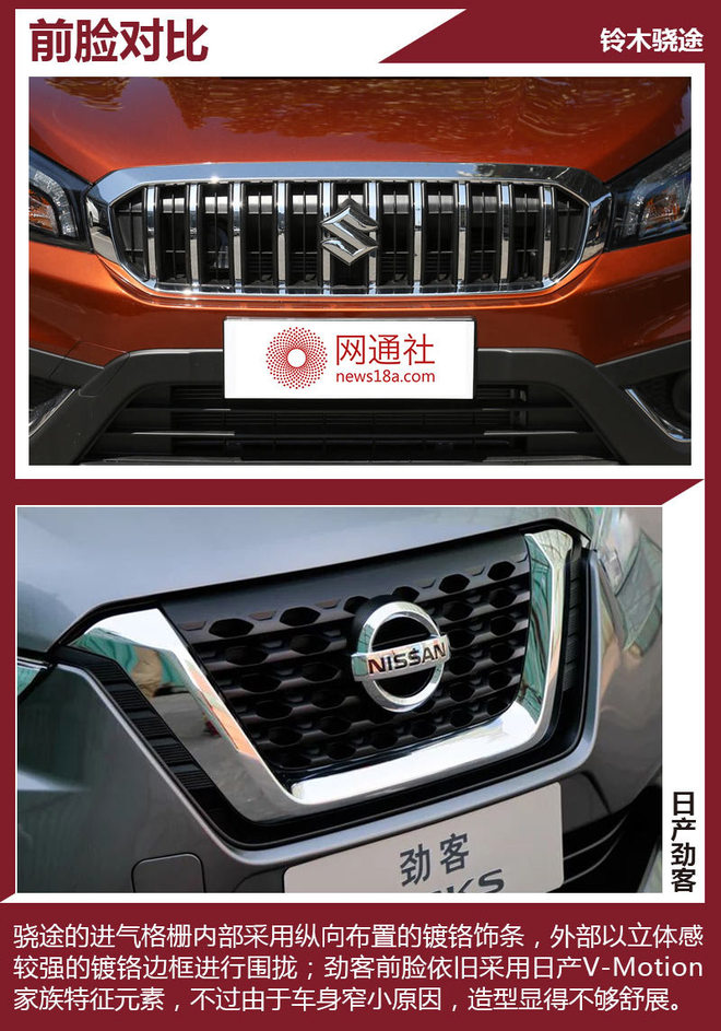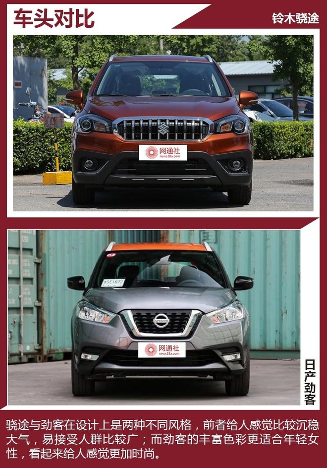 在近期的合资小型SUV领域,无论是自主品牌还是合资品牌,都在快速将各自旗下最新产品推向市场,骁途和劲客 (配置|询价)这一对车型或许在不少人眼里还有些陌生,但提起SX4我想大家应该多少有些印象,今年铃木为它取了一个新的名字,骁途就是SX4的中期改款车型;而劲客同样是东风日产将Kicks引入国内的产物,这两款车在外观上都很有特点,内饰上又体现着不同风格,以至于上市后让它们的关注热度猛增,这两款车都能为年轻人带来新鲜感,所以我们还要看看它们的自身实力怎么样。