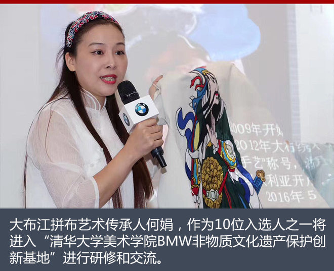 基于2016年已成功建立的 “清华大学美术学院BMW非物质文化遗产保护创新基地”, 宝马再次探索出两条非遗保护的创新路径:第一是以创新的方式推非遗领域的文化传播,第二是以创新的方式促成非遗作品的使用和消费。由过去的“走出去”探访活动,升级为一个凝聚社会资源、助力“非遗走进现代生活”的持续性公益平台。宝马与更多的社会力量合作,推行“非遗跨界孵化计划” 来实现文化部倡导的“让非遗走进现代生活”的穿新探索。