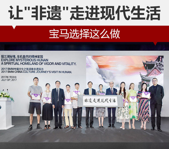 为期十天的“BMW中国文化之旅”湖南非遗探访活动在8月4日暂时告一段落。在这十天里湘南、湘北两条线路,深入到“芙蓉国”11个市州,探访了传统技艺、传统美术和传统戏剧,以及民俗、曲艺和传统音乐等40余项非物质文化遗产项目。并从中推选了十位湖南的非遗传承人,他们将进入“清华大学美术学院BMW非物质文化遗产保护创新基地”进行研修和交流。