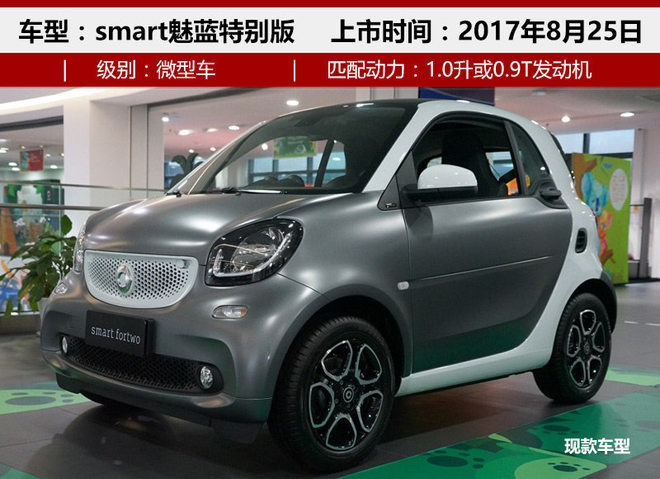 smart魅蓝特别版将使用特殊的车身颜色,前脸部分采用了家族式设计风格,并配备独具特色的U型LED日间行车灯、前雾灯及LED尾灯。此外,双五辐轻合金轮圈的使用,更加彰显出车身的动感十足。