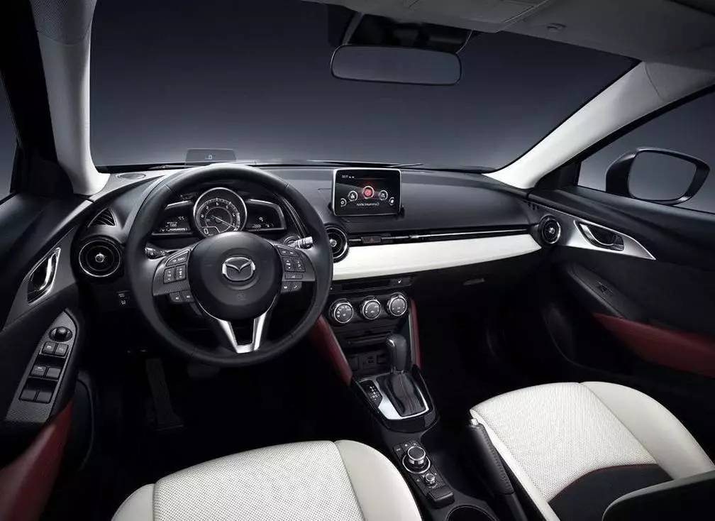 同比外观,马自达CX-3内饰更加突出运动,时尚。采用炮筒式仪表盘设计,且功能区域划分清晰,提高整体使用便利性。方向盘采用三辐式造型,中控台配有悬浮式显示屏,并搭载马自达Active Driving Display平视显示系统,进一步激发驾驶者激情。此外,新车配备有自动刹车系统,可对前方步行者进行自动检测,提高驾驶安全性和舒适性。