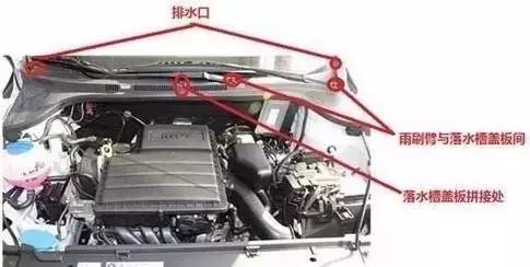 首先,我们得搞清楚排水孔的位置,它一般分布在以下几个地方,天窗、发动机舱内、门板下方、后备箱备胎下、油箱盖内、底大边等,其中最容易堵塞的地方在天窗和发动机舱内,因为这两个地方最容易被忽视。