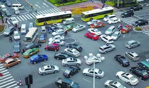 先来看一下没“灯”指挥的十字路口,通常是什么样儿: