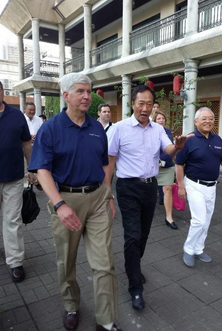 密歇根州长斯奈德表示,十分看好富士康在制造业、科技领域的发展,密歇根优势也是制造业,同时也在发展高科技领域,双方在很多领域可以进行合作。在与郭台铭会见之前,国务院总理李克强、广东省省长马兴瑞等领导也会见了斯奈德。