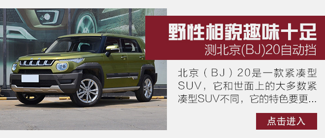 北京BJ20无论是外形还是内在,都具备了较高的设计水准,“野”的外观设计使其更适合追求个性与特立独行的年轻人。虽然自身被定义为紧凑级SUV,但丰富的配置以及合理的空间,也让其在这个领域更具竞争力,动力的匹配方面更加成熟,驾驶起来也更加顺畅自如。