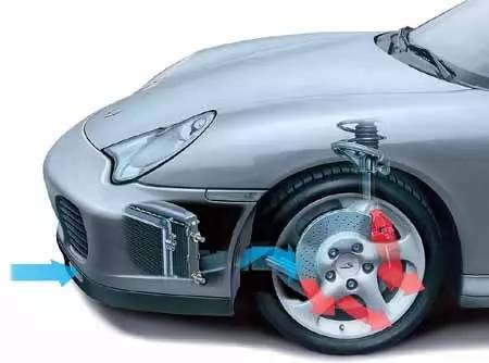 热量这个东西对于任何工业产品来说都是个双刃剑——有时候我们需要它来帮助我们工作(比如发动机),而有时候它又成为了阻碍工业产品持续稳定工作的大敌。这次的制动系统就是如此:正因为制动系统的工作原理是将动能转化为热能,那这些多余的热能如何继续转化为不影响车子的能量就成为制动系统的最大难题(高中物理的能量第一定律:能量既不可产生也不可消灭,它只能从一个形式转化为另一个形式,或者从一个物体转化到另一个物体上)。于是在目前的车辆工程设计水平上,我们将这些热量转化的主要方式就是:利用风。