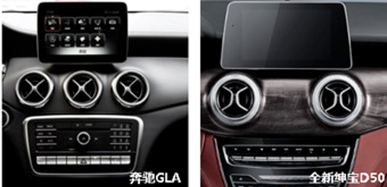 想写这篇文章的起因是前两天有朋友发来了全新绅宝D50和奔驰GLA的内饰对比图,问我如果不看标注是否能分的出那个是北汽那个是奔驰吗?
