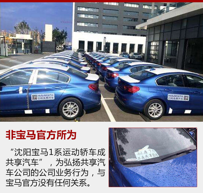 经证实,网传所说的1500辆宝马1系运动轿车加入到共享汽车行业,实为弘扬共享汽车公司从宝马沈阳经销商处采购了20辆新车投放到共享汽车市场,此为公司自行业务选择,并非网络所传由宝马官方赞助合作。