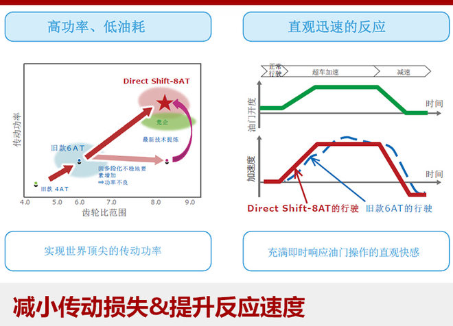 除对发动机及混动系统进行改良外,全新一代凯美瑞还将匹配由丰田自动车与AISIN AW协力开发的新型“Direct Shift”8速自动变速箱。新的8AT变速箱较此前6AT变速箱具有更大的齿比范围,全新的工艺和材质降低了由摩擦导致的扭力损失,新液力变矩器的运用也让变速箱实现了更广的锁止范围,提升燃油经济性的同时还提供了更为直接的动力感受。全新8速自动变速箱的加入将使全新一代凯美瑞在动力响应方面更加出色。