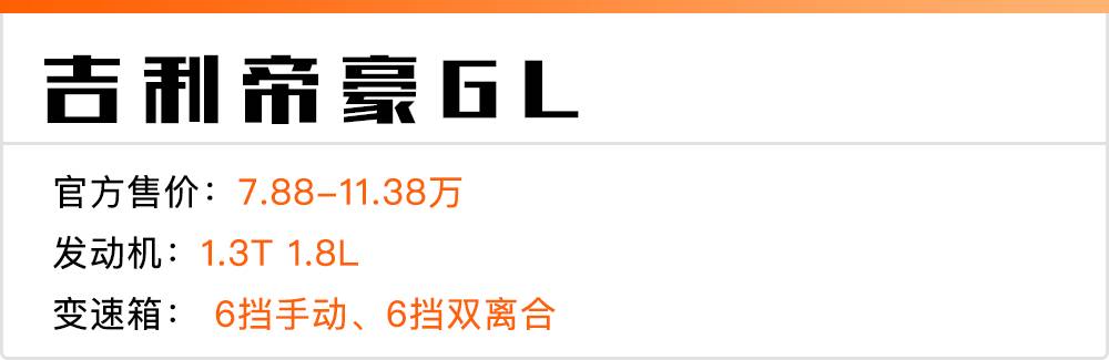 砖叔点评:帝豪GL的尺寸比帝豪要大些,外观内饰的设计和配置丰富度都是同级别里处于优秀水准的。它的双离合调校得不错,甚至比不少合资品牌都要平顺些。底盘调校也比较优秀,可以对飚一些合资品牌的车型。另外,帝豪GL的1.3T发动机的马力几乎接近1.8L的水准,动力表现出众。砖叔推荐10.78万元的 2017款1.3T自动尊贵型。