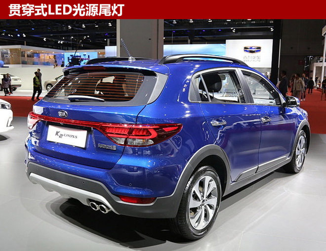 新车前脸换装更加狭长的“虎啸式”进气格栅,两侧大灯组进行熏黑处理,灯组内部提供卤素光源并带有透镜,有效提升夜间行车安全;大面积下格栅整体造型十分运动,保险杠两侧配有LED日间行车灯,更具辨识度。KX CROSS尾部整体设计饱满,两侧LED光源尾灯采用贯穿式设计,点亮效果十分醒目。同时,保险杠层次感较强,排气管采用单边双出式设计。
