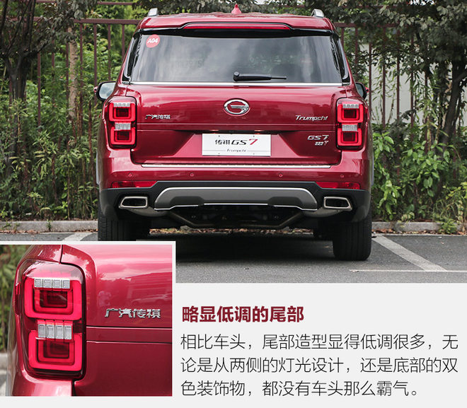 整体设计虽然与GS8大同小异,但是细微之处有着区别。令人感到欣慰的是车辆的外部整体做工水准以及工艺,还有良好的便利性与实用性配置并没有减少,一些亮眼的设计与高科技配置也保留下来,这些都是GS7日后在同级别中竞争的优势所在。