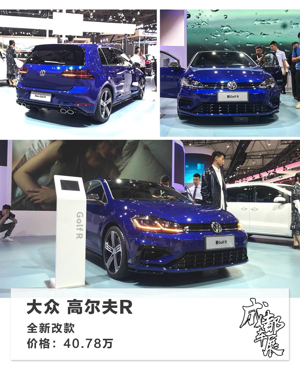 新款高尔夫 (配置|询价)R也在成都车展推出改款车型,这款“小钢炮”售价为40.78万,与老款相同。而变化之处在于设计细节,前大灯换上了全LED光源、新的双色轮毂,犀利程度有所提升;内饰部分变化甚小,只有中控屏升级到了9.2英寸;动力方面也有小变化,2.0T发动机最大马力提升到310匹,峰值扭矩为400牛·米,搭配的还是7速双离合变速器,0-100km/h加速时间为4.6秒。