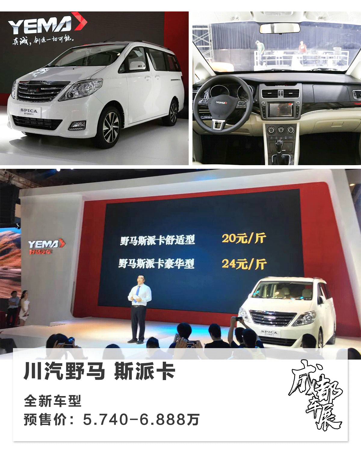 一向喜欢给大家制造“惊喜”的川汽野马,这回在家门口又玩了次别出心裁的预售价公布方式,20元/斤的车(5.74万),真可谓相当的便宜,而这辆新车就是斯派卡,是野马的首款MPV车型。斯派卡的外形设计有浓郁的丰田埃尔法风情,中控部分采用传统T字形对称布局,浅色座椅也能营造温馨的感觉,而动力方面则有些差强人意了,先期只会有1.5L+5MT组合,年底会有1.5T发动机加入,而它还会有纯电动版本。