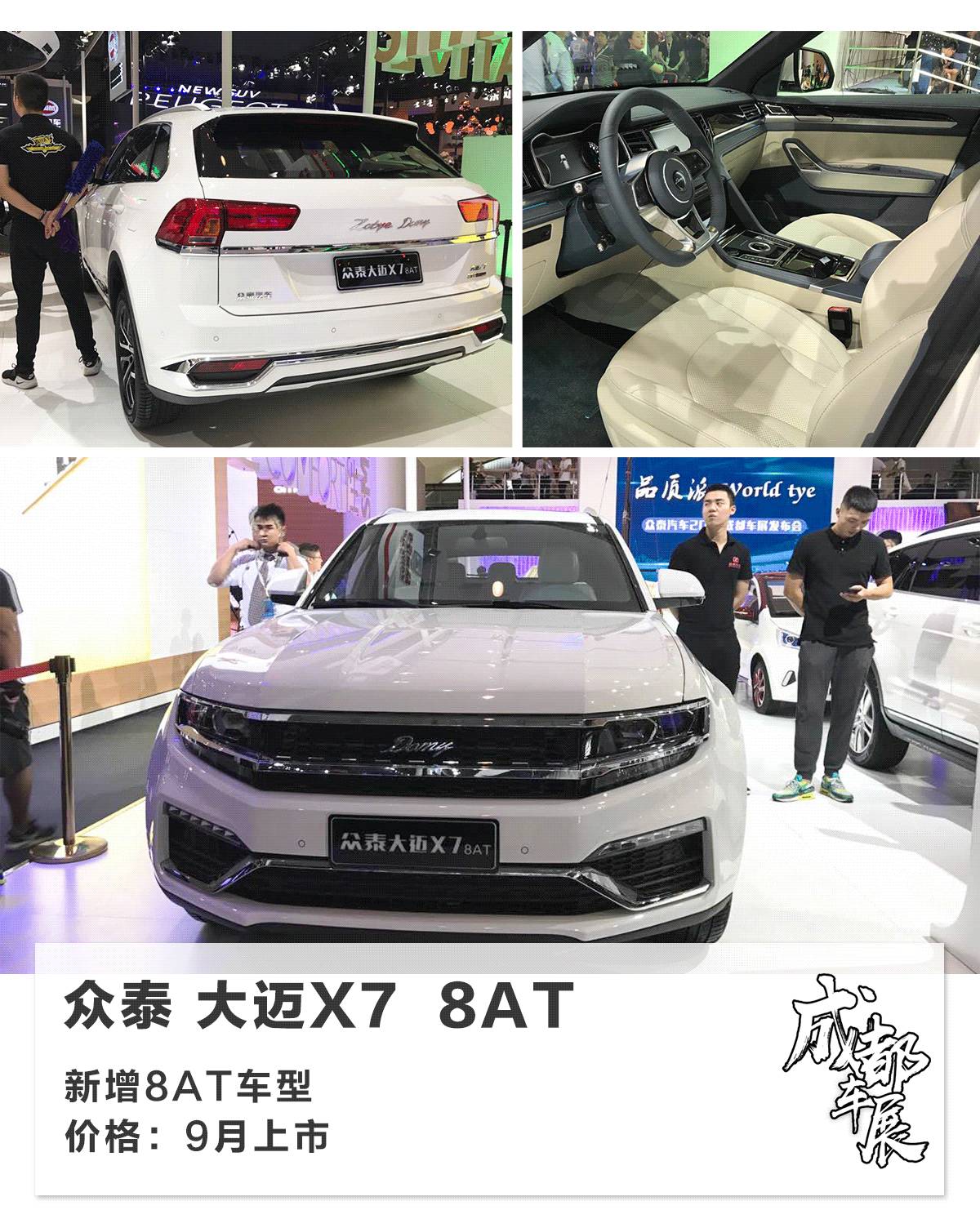 众泰大迈X7的2.0T+8AT车型在车展上正式亮相,这也是国产车型中第二款采用国产8AT变速箱的车型。新车在设计方面没有变化,外形尺寸依旧很大,内部也挺有豪华感,动力参数依旧是最大马力190匹、峰值扭矩250牛·米。正式售价将会在9月份公布,预计会与现款2.0T车型15万左右的售价差不多。