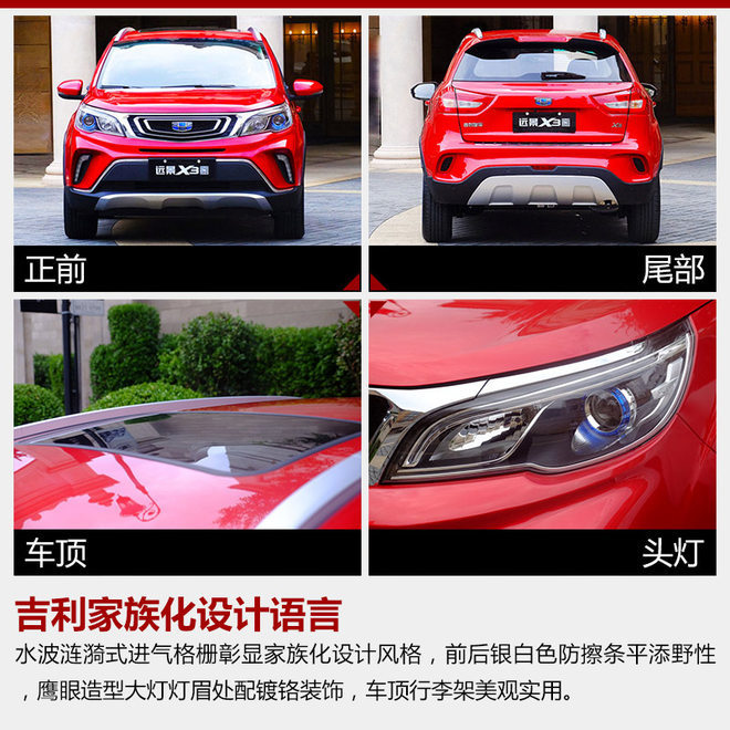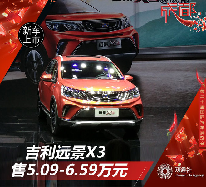 吉利远景X3是远景系列的全新小型SUV,定位介于远景X1和远景SUV之间,将填补吉利品牌在这一细分市场的布局空白。网通社从吉利汽车官方获悉:吉利远景X3正式上市。新车共推出5款车型,预售价格为5.09-6.59万元。远景X3前脸采用吉利家族式设计风格,极具辨识度,内饰采用了与博越近似的造型设计。动力方面,远景X3将搭载1.5升自然吸气发动机。