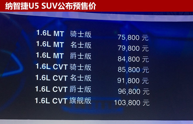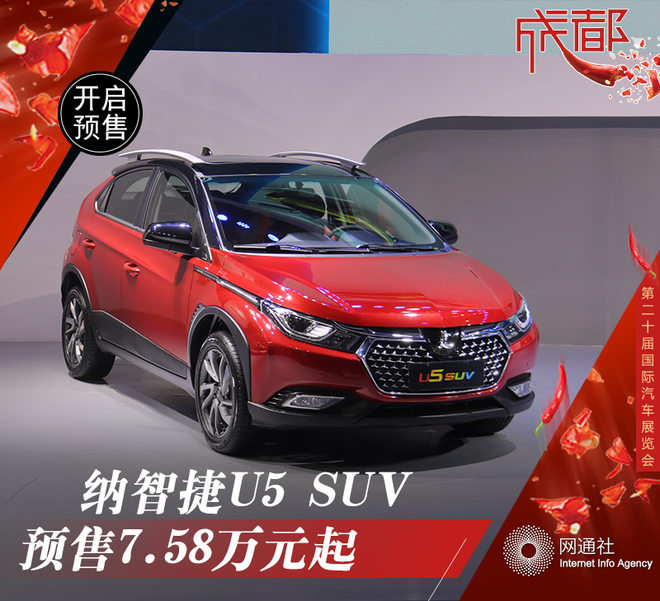 纳智捷U5 SUV于今年4月正式亮相,是东风裕隆旗下全新小型SUV,基于纳智捷锐3平台打造,并计划于10月上市。网通社从东风裕隆官方获悉,纳智捷U5 SUV正式开启预售,共推出7款车型,预售价为7.58-10.38万元(优惠后)。新车采用全新家族化设计语言,大灯组延伸至翼子板上方的设计较为抢眼。动力方面,新车将搭载1.6升自然吸气发动机,匹配CVT变速箱。