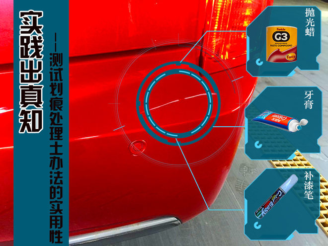 解决轻度划痕的土办法有很多,最简单的可以用毛巾蘸水擦拭、或者用牙膏擦拭,复杂一些的也可以用抛光蜡、补漆笔等办法解决。