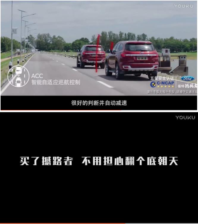 画面一转就到了小燕子摔马那段,永琪责怪小燕子为什么不买福特撼路者,强调撼路者具有ACC智能自适应巡航控制系统,可以保证小燕子不再翻个底朝天。