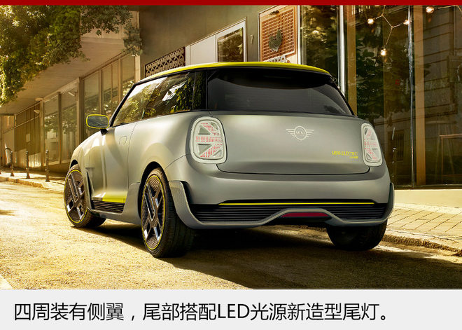 外观方面,全新MINI纯电动概念车延续MINI家族双色车身的设计;六边形散热格栅和圆形大口径头灯搭配,同时左侧配黄色充电标识,在远处一眼就会被识别出来。车身侧面还装有侧翼,周围配有玻璃纤维材质的黑色装饰物件;尾部大尺寸LED光源尾灯,夜间电量后的效果也十分醒目。