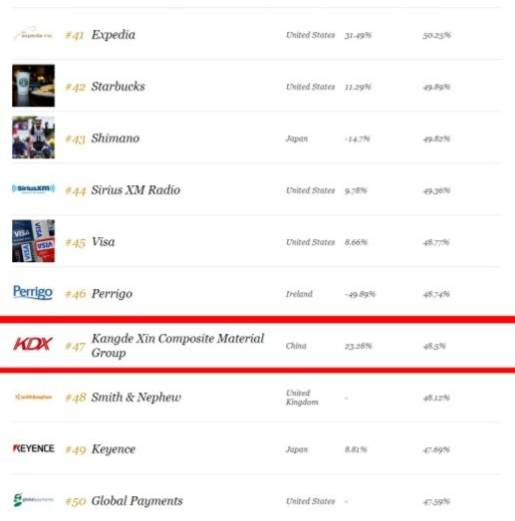或许有小伙伴会认为康得新排名第47位,名次并不靠前。潮老师想说,此次上榜的企业中,互联网企业居多。而康得新是唯一一家榜上有名的“高分子材料”企业。