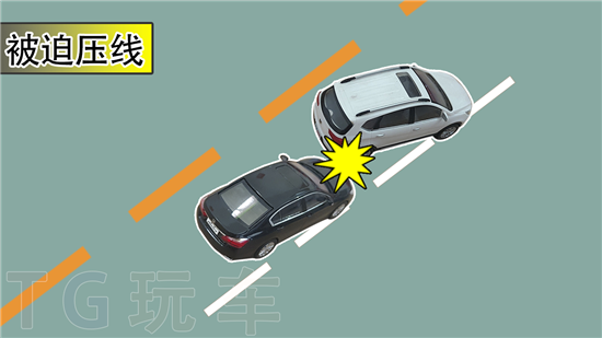 这个大家就比较容易理解了,因为前方车辆压实线已经违反了交通法规,所以前车就得负全部责任!