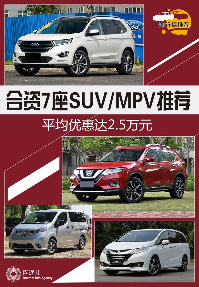 纵观本周各地的合资7座SUV/MPV市场,各个品牌的车型均有着很大的优惠力度,小编总结了一些优惠幅度较大,亦或是比较热门的车型,下面就让我们一一评说。(本文降价信息根据当地4S店当周报价信息汇总,只提供参考,具体优惠细节请到店咨询。)