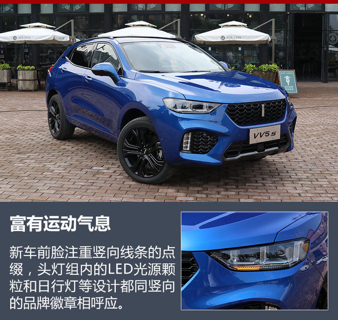 WEY VV5s的头灯采用了全LED光源,转向灯加入了动态流体灯带的设计,更富有科技感。较为扁平的大灯与进气格栅,横向拉长了视觉宽度,让车头富有动感也不显笨重。整车线条较为圆润,放在车门处的后视镜会减小视觉盲区。