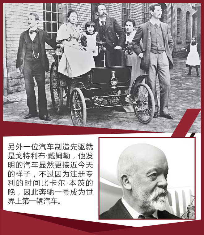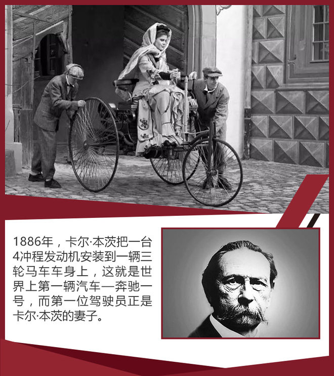 19世纪科技革命的浪潮席卷整个欧洲,随着1876年德国人奥拓发明了四冲程发动机,人们开始了陆地交通工具的革新,其中就包括了两位德国工程师,卡尔·弗里特立奇·本茨和戈特利布·戴姆勒。1886年,卡尔·本茨把一个0.9马力的四冲程发动机装在马车车架上,这个不用马拉的三轮车迅速成为热门话题,另外一位工程师戈特利布·戴姆勒则在迈巴赫的帮助下,制造出世界上第一辆四轮汽车。因为卡尔·本茨的三轮汽车注册专利更早,因此它的作品成为了世界上第一辆汽车,奔驰和戴姆勒两大巨头的竞争就此拉开序幕。