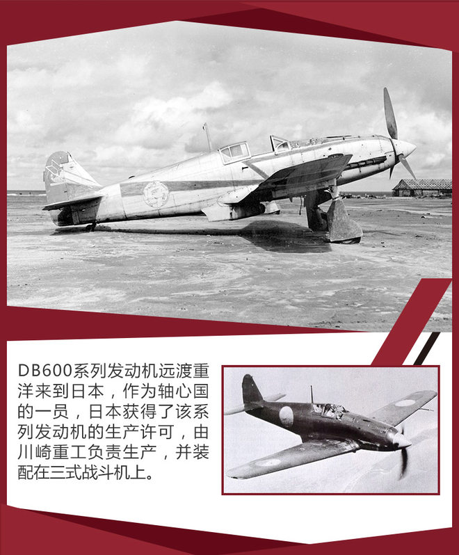可以说BF-109系列战斗机在搭载了DB600系列发动机之后如虎添翼,成为了德国空军王牌飞行员的摇篮,这些飞行员的击坠数量是盟军飞行员望尘莫及的。另外DB600系列发动机还远渡日本,川崎公司就获得了DB601的许可生产,三式战斗机搭载的就是川崎公司生产的DB601发动机,不过此时的发动机名称已经改为HA-40。