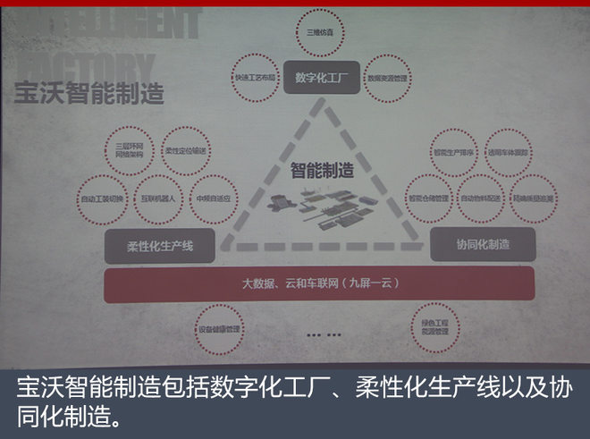 宝沃通过构建数字化系统、整合数据资源,建立起数字化工厂。基于该数字化工厂系统,可使车企对市场销售需求进行精准掌控,对于未来汽车发展趋势也可以进行提前预判,并基于数据的分析及掌控,可以实现产品及工艺的快速布局。