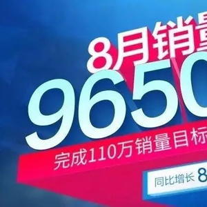 8月份销量96505辆,同比增长80%