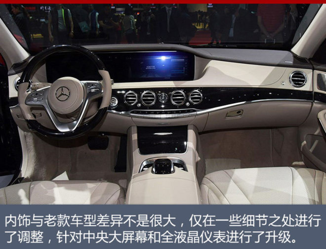 作为第十代S级的中期改款车型,新车基本延续了老款车型的设计风格,并对细节部分进行调整,最为明显的大灯内部灯组改为了“三道杠”的日间行车灯设计,此外,现款车型上的四幅式进气格栅改为三幅,新车的前保险杠经过了重新设计,视觉效果更显大气。