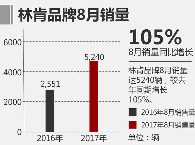 林肯品牌8月份单月销量超5,240辆,较去年同比涨幅高达105%;今年累计销量超34,494辆,是去年同期的近两倍。林肯品牌各款车型在8月份均取得了两位数的同比增长,其中林肯MKZ单月销售近2000辆,同比增长超过一倍。