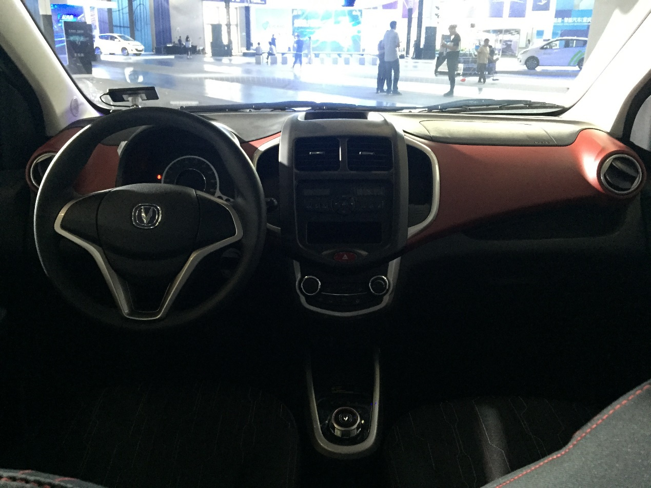 同时新奔奔EV也充分展现了“秀外慧中”一词。奔奔EV内饰大量用同级别车型罕见的搪塑软性材料。黑红色的座椅造型动感,配合碳纤维的内饰纹理,给驾驶员营造了强烈的运动感而又不失舒适感。同时还装备了一块液晶仪表盘,行驶时能动态反应车辆能耗、信息,配合着旋钮式换挡营造了强烈的科技感。
