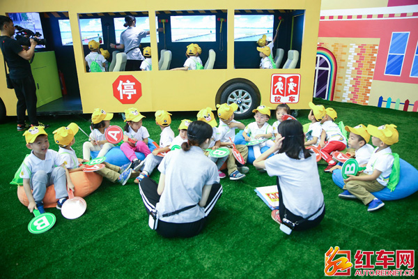 小朋友学习校车安全知识。