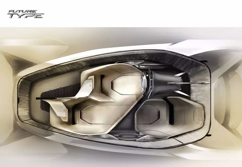 FUTURE-TYPE采用了半串联式的2+1座椅布局,“除了可以更加方便的在狭窄的城市道路中驾驶以及停车,面对面的“社交”座位还可以将自主驾驶提供的社交机会最大化。”