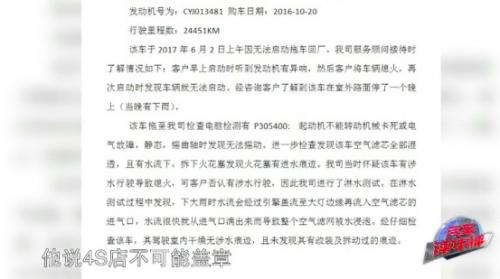 黄女士向《汽车评中评》调查员提供了一份书面报告显示,黄女士的途锐车并没有涉水,而且证实了外部水确实可进入进气口,从而导致车辆空气滤网被水浸泡。然而,让黄女士气愤的是,她希望4S店能对这一报告盖章,遭到4S店反对,声称只能由技术总监签字。随后,黄女士提出退车还钱的诉求,但同样遭到4S店的无视,反而将车辆故障推到黄女士身上,强调途锐进水只是黄女士的“个案”,进水原因是因为“黄女士自己用车有问题”。