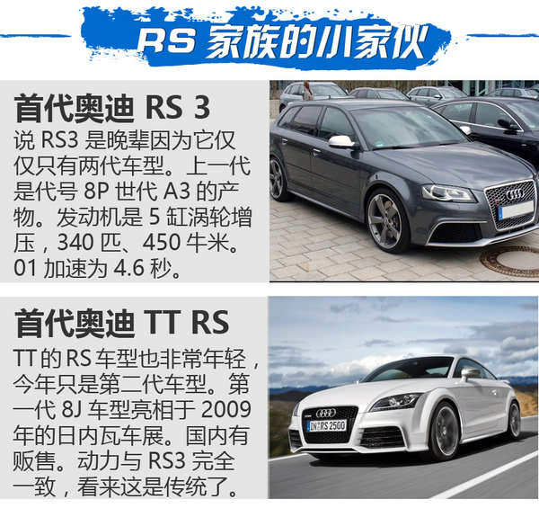 尽管我个人对德系三大高性能部门的排序是M、AMG、RS。但是,这并不妨碍RS在国内是人气最高的那个部门。在马路上都不用RS,仅仅一台S,不管它是3还是6甚至7都足够人路人赞叹。如果你又是一位爱刷程序,爱算数(马力)的人士,那奥迪的RS简直就是他们的缪斯。可是RS5还没有到来,RS6比保时捷还要贵,RS4还在法兰克福等待发布,那让我们这帮小红粉如何是好呢?别急,福利来了!TT RS和RS3来了!