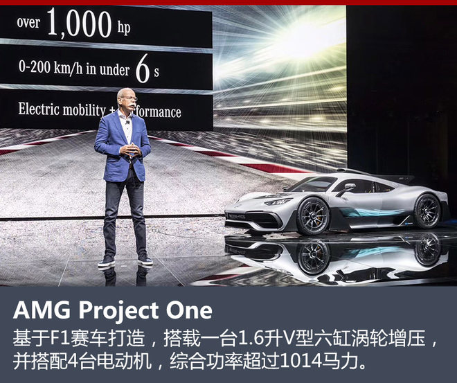 梅赛德斯-奔驰还将电气化战略覆盖到AMG车型中,并将其称之为EQ Power Plus。首款获得上路行驶许可的F1 赛车——AMG Project One在这次车展中正式发布,该车采用源于F1赛车的1.6升V型六缸涡轮增压,并搭配4台电动机,组合成一套混合动力系统,综合功率将超过1014马力,同时出纯电动行驶里程约达25公里。